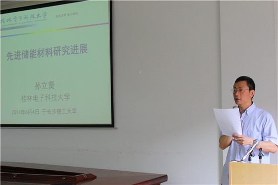 6月2-4日,我国著名的储氢储能和材料物理化学研究专家、浦京“湖湘学者”特聘教授、中科院优秀“百人计划”学者、广西“八桂学者”、桂林电子科技大学材料科学与工程学院院长、博士生导师孙立贤教授来到化学与生物工程学院指导研究和交流讲学。两天来,孙教授与化学学院能源材料与分析监测科研团队的骨干成员进行了广泛的研讨,并就新能源材料和材料监测新技术等领域的研究前沿及发展趋势与各位老师和研究生进行了面对面的交流,提出了新能源材料下一步发展的目标和实施的方向。