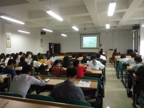 首先,曹忠教授与同学们一起探讨了“化学”到底是什么。他从生活中的化学知识谈起,以贴近生活的方式地阐明了化学的定义。接着,曹忠教授用精彩的实例向同学们讲述了化学与社会的关系以及化学在社会中起到的作用。他指出,一切生命的起源和延续离不开化学变化,化学在保证人类的生存并不断提高人类的生活质量方面起着重要作用。他还强调化学创新的重要性。他认为创新是社会发展的重要源泉,化学创新更是重中之重,他希望每个同学练好专业基本功,奉献社会,书写精彩人生。最后他以“化学创造未来,化学改变人生”与在座同学共勉。