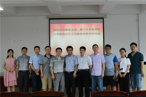 2016年6月23日,应350vip浦京集团官网化学与生物工程学院的邀请,国家杰出青年基金获得者、厦门大学化学化工学院院长、博士生导师江云宝教授来浦京进行学术交流访问。学术交流活动由化学与生物工程学院院长杨荣华教授主持,副院长曹忠教授,肖忠良教授,以及化学、化工等相关学科的青年骨干教师、研究生、本科生100余人参加了此次学术交流活动。