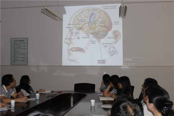 讲座由我院院长程云辉教授主持,院长助理王建辉博士,张运雄教授、易翠平教授、文李博士、许宙博士及食品科学与工程全体研究生参加报告会上,罗教授首先明确了食品感官评定与神经科学的关系,从嗅觉系统、味觉系统、体表感觉神经系统这三方面给出了科学严谨的解释;之后又就当下非常普遍的肥胖症进行了分析,并仔细说明了引起肥胖症的原因并分析了如何避免肥胖症的神经学与食品科学相关方法。讲解完毕,罗教授与在座师生现场互动,对大家的疑问给出了自己独到的见解。深入浅出的讲解让大家对食品科学与生物学、神经科学的交叉领域有了进一步的了解,也开阔了我们在食品科学方面的的研究思路。