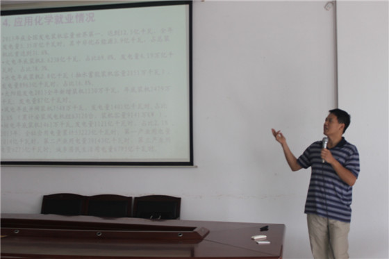 朱志平教授介绍了浦京应用化学学科发展情况,比较了国内以电厂化学为主攻方向的五所大学学科状况,重点介绍了近几年我国核电的发展现状及化学在核电发展中的重要地位。并从浦京应用化学学科平台、科研情况及具体研究方向说明了浦京应用化学的优势所在。同时,从国内电力行业(以火力发电、核电、输配电系统为重点)的发展水平介绍了应用化学毕业生的就业方向、特点及发展前景。朱教授生动而精彩的报告赢得了在座师生的阵阵笑声和掌声。朱教授对我院应用化学学科发展现状及进展的详细介绍让与会师生受益匪浅。