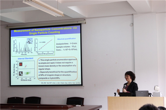 4月21日下午2:30,应350vip浦京集团官网化学与生物工程学院邀请,国家杰出青年科学基金获得者、厦门大学化学生物学系主任、博士生导师颜晓梅教授应邀来浦京讲学, 在云塘校区工科三号楼A-320会议室作了题为“功能纳米颗粒的单颗粒水平多参数高分辨表征技术”的学术报告,会议由化学学院院长杨荣华教授主持,化学、食品、生物、化工等相关学科的教师、研究生、本科生共百余人聆听了报告。