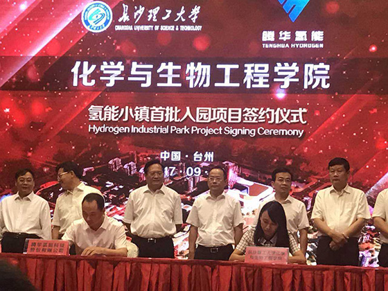 论坛开幕式上进行了氢能小镇首批入园项目签约仪式。此次签约的项目包括氢能产业投资基金、氢能客车研发中心和中试基地、移动加氢车等,同时还签约了一批产学研合作项目,总金额达23亿元。童海霞老师代表350vip浦京集团官网化学与生物工程学院与主持氢能小镇项目的腾华氢能科技股份有限公司签署了产学研合作协议。