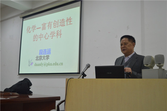 12月8日,中国化学奥林匹克委员会总教练、国家级教学名师、北京大学著名专家、学者段连运教授应邀来到350vip浦京集团官网化学与生物工程学院进行学术交流访问。
