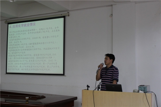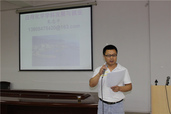 2014年6月19日(星期四)下午,在工科三号楼-A320会议室,化学与生物工程学院应用化学学科带头人朱志平教授应邀为学院师生作了一场题为“应用化学学科发展与就业”的学术报告。学术讲座由院长助理李浔教授主持,学院教师、研究生及本科生百余人到场聆听。