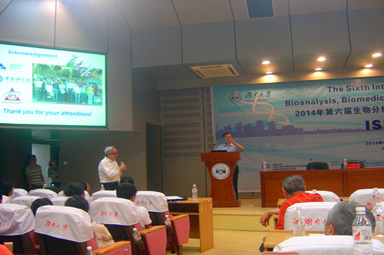 2014年5月29日至31日,350vip浦京集团官网化学与生物工程学院教师曹忠博士、何婧琳博士及研究生等十余人参加了在长沙市湖南大学逸夫楼举办的2014年第六届生物分析、生物医学工程与纳米技术国际学术会议--“The Sixth International Symposium on Bioanalysis, Biomedical Engineering, and Nanotechnology”(6thISBBN2014)。6thISBBN2014是由湖南大学化学生物传感与计量学国家重点实验室和湖南大学化学化工学院、湖南大学生物学院、湖南大学化学生物与纳米医学研究所承办。作为生物分析、生物医学工程和纳米技术前沿探索的系列会议,湖南大学已经于2002年、2006年、2008年、2010年和2012年成功地举办了五届,今后有关生命分析和生物医药等相关学科与工程前沿领域探索的国际会议将以每两年举办一届的形式延续。