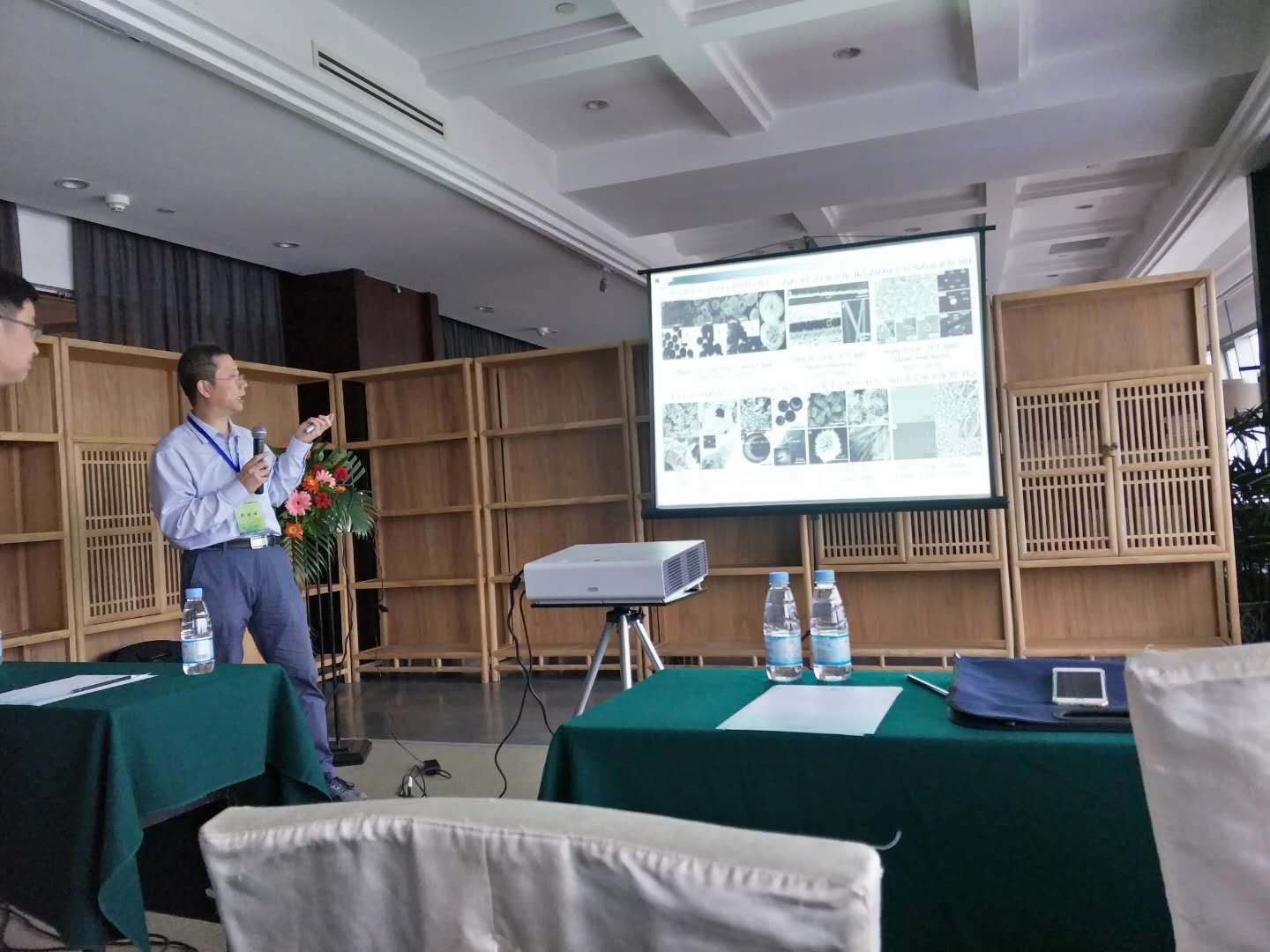 浦京化学与生物工程学院曹忠教授应邀在会议上作了“基于金属氧化物中空微球的气体传感器研究与应用”(IL22)的邀请报告,报告总结了金属氧化物气体传感器的研究进展和发展概况,汇报了课题组近年来在金属氧化物中空微球气敏传感方面的成果和环境监测应用推广,引起与会专家学者的很大兴趣,获得了热烈的掌声。杨盛博士作了题为“细胞自助式原位信号放大与超灵敏荧光成像分析”(OP01)的口头报告,报告十分精彩,获得了雷鸣般的掌声。