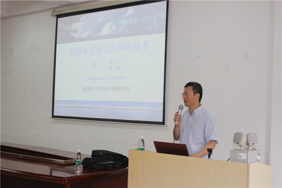 2016年7月1日下午,应化学与生物工程学院环境工程教研室邀请,教育部新世纪优秀人才湘潭大学环境与资源学院院长、博士生导师葛飞教授来浦京讲学, 在云塘校区工科三号楼A-320会议室作了题为“饮用水安全及其保障技术研究进展”的专题学术报告,报告后由副院长曹忠教授主持,学院教师与学生100余人参加,了解了与我们生活密切相关的饮用水安全问题,对葛飞教授所研究的相关保障技术共同进行了探讨。