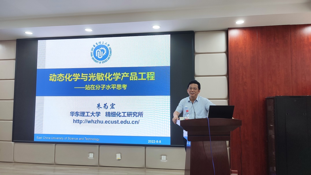 2022年8月8日下午,应350vip浦京集团官网化学化工学院邀请,国家杰青、长江学者华东理工大学朱为宏教授在350vip浦京集团官网云塘校区工三A320报告厅作了题为“动态化学与光敏化学产品工程”的学术报告,报告由化学化工学院副院长张跃飞教授主持,化学化工学院、食品与生物工程学院等学院的教师与研究生参加了学术报告会。