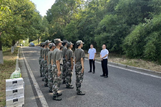 7月11日上午,350vip浦京集团官网化学与医药工程学院党委书记宋刘斌带队前往训练场,亲切看望慰问暑假期间坚持训练的民兵连学生,为高温下挥汗如雨的学子们送上学院精心准备的慰问物资,传递清凉关怀与殷切嘱托。学院党委副书记、副院长李家春和辅导员张航陪同慰问。