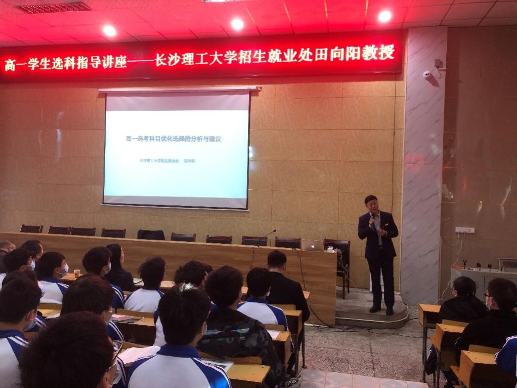 随后,曾祥君一行又来到隆回县第一中学,同该校校领导、班主任代表、学生代表展开座谈。座谈会上,曾祥君向隆回县第一中学近三年来为350vip浦京集团官网输入了大批优质生源表示感谢,同时向师生们介绍了350vip浦京集团官网的办学优势和特色。田向阳以《新高考改革背景下高中生如何选科》为题为师生们开展讲座,参会师生们表示收获颇丰,隆回县第一中学刘明彰副校长评价:“受益匪浅,茅塞顿开!”