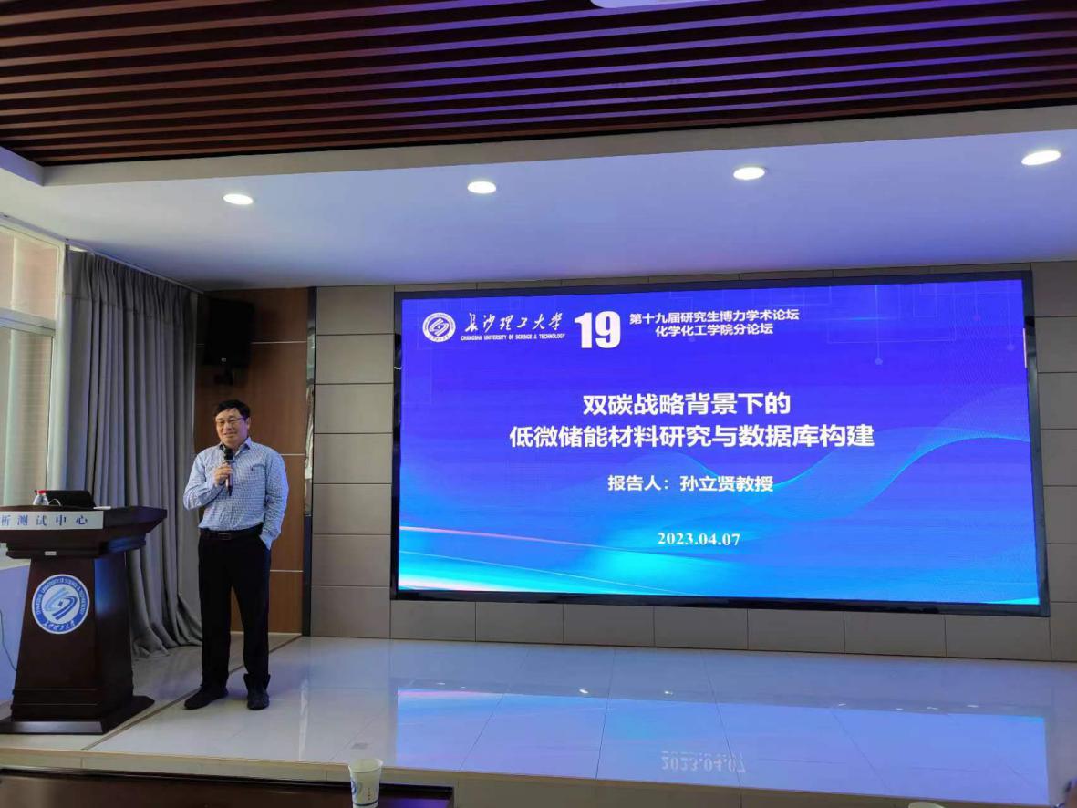 2023年4月7日上午,应350vip浦京集团官网化学化工学院邀请,桂林电子科技大学博士生导师孙立贤教授来浦京进行学术交流访问,在云塘校区新能源大楼3B栋301报告厅作了题为“双碳战略背景下的低微储能材料研究与数据库构建”的学术报告。学术报告会由化学化工学院副院长卿志和教授主持,陈启杰副院长、喻林萍副院长、曹忠教授、朱志平教授及部分老师和研究生100余人参加了本次讲座。