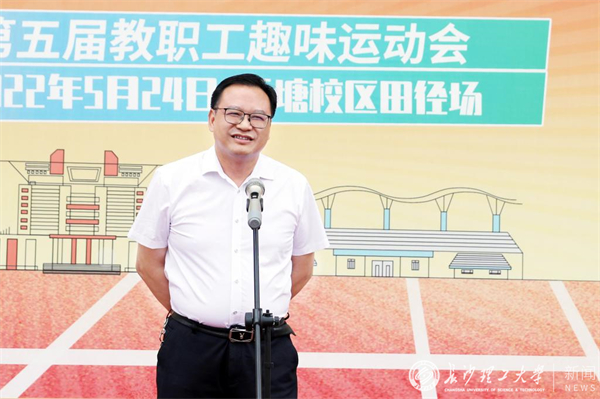 蒋璟萍在致辞中指出,喜迎党的二十大,推动实施“健康中国”战略,打造健康文明、昂扬向上、全员参与的教职工文化,是这次教职工趣味运动会的主题。通过开展各类趣味活动,强健身体、和谐关系、凝聚力量,既是构建幸福长理、和谐校园的基本要求,更是全体教职员工的共同愿望和精神需要。她希望广大教职工以本次趣味运动会为契机,掀起全民健身的热潮,把运动会中所彰显的精神,转化为做好本职工作的强大动力和豪迈激情,推动学校各项工作再上新台阶。