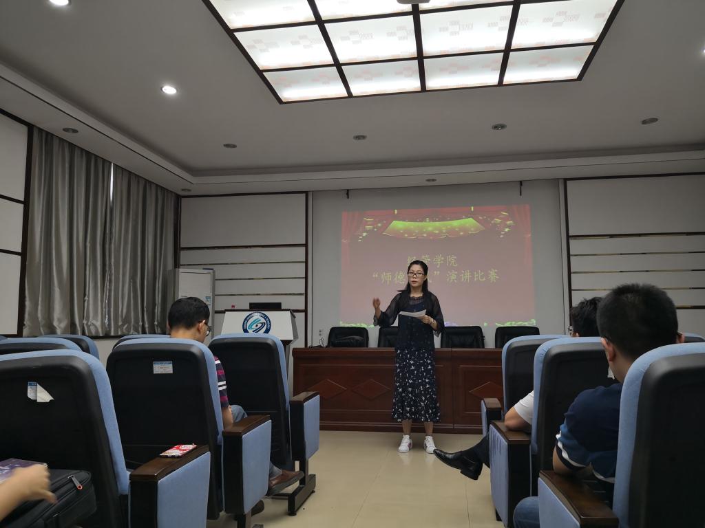 企管系何伟老师是一位有着三十余年教龄的老教师,回首自己在教师岗位上的一万多个日日夜夜,她说学生步入社会后的健康成长是对她从教三十余年的最高奖励;财会系张帆帆老师则以一首歌词“爱是一道光,如此美妙”来作为演讲主题,他认为,教师以德为先,师德胜知识,而“师德”的中心则是“爱”,正是“爱”折射出教师人性的光辉;管工系范辰老师是一位新入职的博士,她从管工系教师团队中感悟到了“师德师风”的高尚情怀,身边优秀老师们激励着她不断地向“四有”好老师标准看齐;经贸系胡尊国老师结合自己从最初对教师岗位的排斥到慢慢喜爱上这个职业并下决心奋斗终生的心路历程生动诠释了教师“爱与责任”;行政工会小组计潇老师是一名工作五年的学生辅导员,因为受到自己老师的影响,毕业后毅然选择走进高校与学生为友,她认为教师更像是“水”,是“上善若水”,是“水利万物而不争”金融系杨密老师出生于教师世家,父母和自己做为教师都在用自己的实际行动回答着总书记“培养什么人、怎样培养人、为谁培养人”这一时代之问。