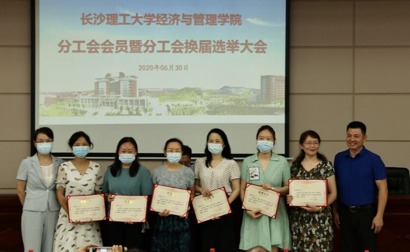 然后,分工会举行了“为爱发声,健康抗疫”颁奖活动,经济与管理学院彭莉、彭积敷、冯丽霞、柳宇燕、冯萍、解冠慧六位老师获得了工会抗疫健康活动奖,校工会委员会委员钟武、院长陈银娥为六位老师颁发了获奖证书。
