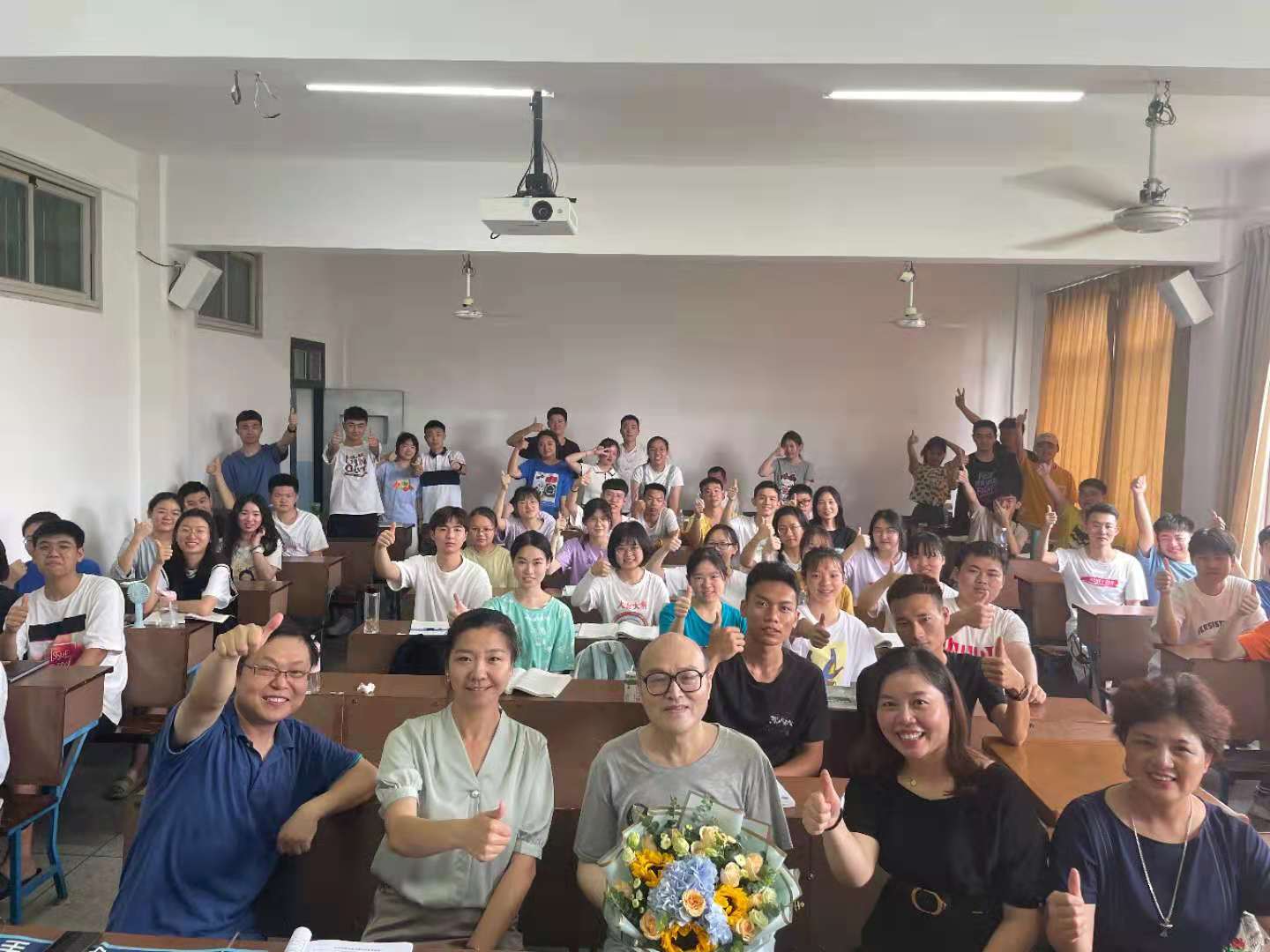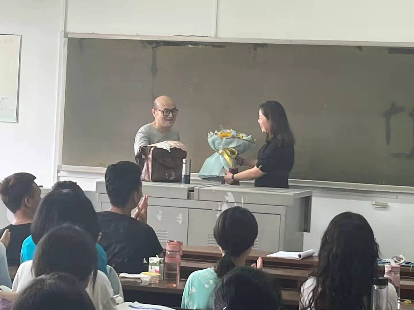 6月16日上午第四节课下课铃声敲响,一束鲜花送到了12512教室讲台上,掌声响起,温暖流动。这是经管学院企业管理系刘小兵老师退休前的最后一堂课,经济与管理学院院党委书记丁丹、院分工会主席唐青、院党政办主任黎月娥、党企管系支部书记李祝平、系主任何昊等人前往教室,与教室里的同学们一道,为刘小兵老师送上了祝福。