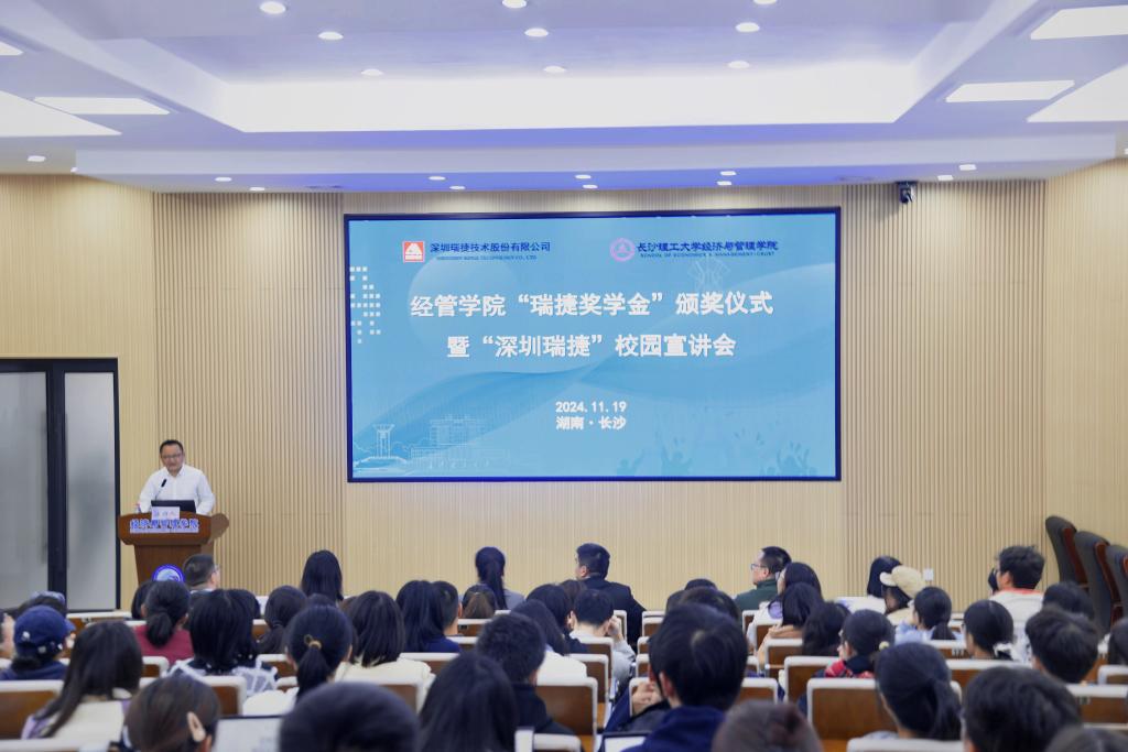 11月19日下午,经管学院“瑞捷奖学金”颁奖仪式暨“深圳瑞捷”校园宣讲会在经管大楼 100 报告厅举行。深圳瑞捷技术股份有限公司是350vip浦京集团官网产学研用合作校友企业,是一家提供专业的第三方评估和项目管理服务的高新技术企业、上市公司。该公司董事长范文宏是浦京94级校友,“瑞捷奖学金”的成立体现了范文宏董事长对母校的深情厚谊,也体现了深圳瑞捷技术股份有限公司对教育事业的关心。