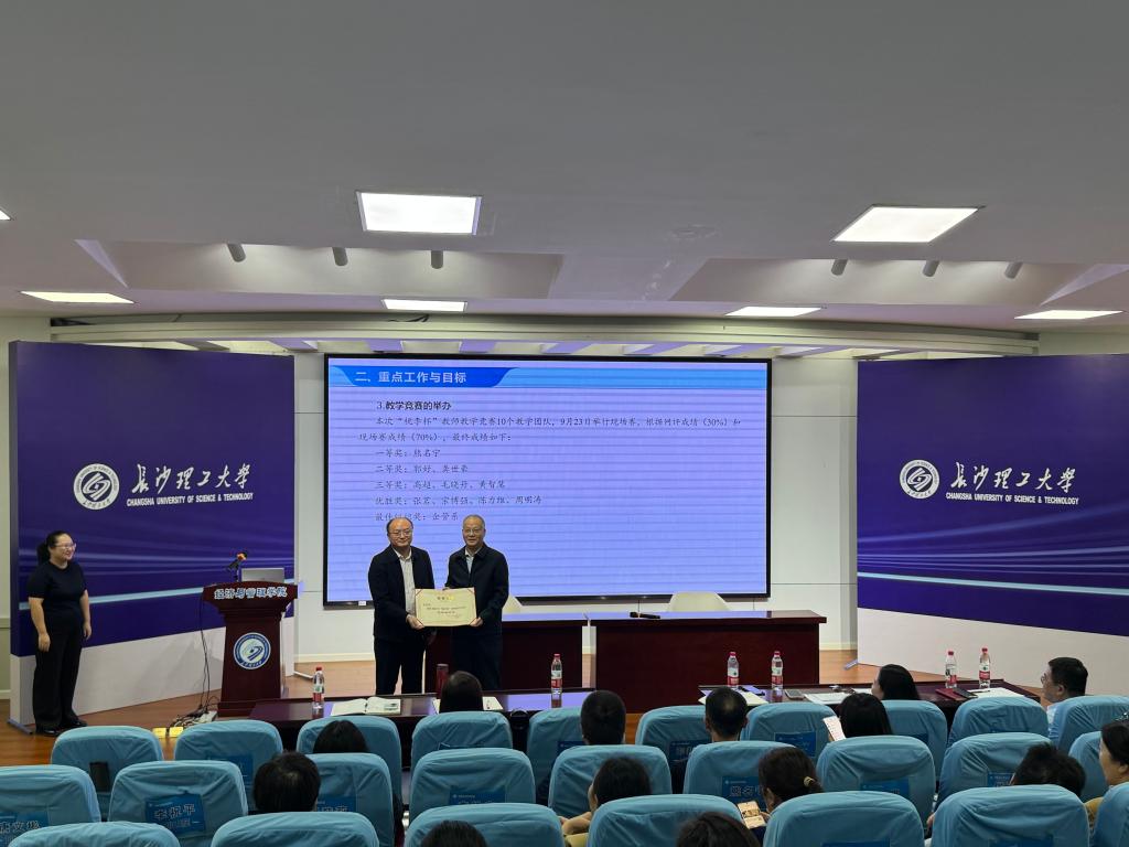 会议还举行了桃李杯教师教学竞赛颁奖仪式。陈洁宣读了学院表彰决定,彭新宇和历年获奖教师代表为本次教学竞赛获奖选手和优秀组织单位颁奖。