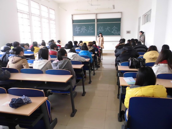 为总结过去,展望未来,2013年12月25日中午12时30分,经管学院朋辈心理工作年终总结大会在文科楼D101教室召开。浦京心理健康教育中心熊恋老师、我院心理辅导员李丽兰老师以及我院朋辈心理部、各班心理委员等共计80余人出席了此次大会。
