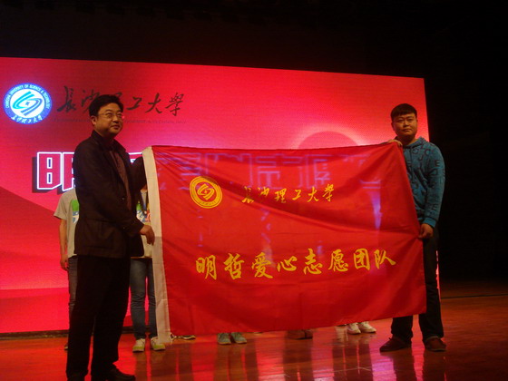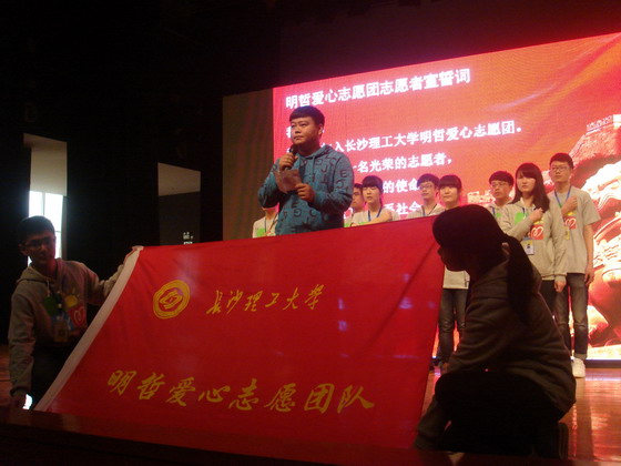 紧接着,在道德文化大讲堂现场还举行了以毕明哲名字命名的“明哲爱心志愿团”的成立仪式,由邹宏如副校长向志愿团授旗,毕明哲带领志愿团代表进行宣誓。明哲爱心志愿团将在毕明哲传承的雷锋精神的感召下,践行志愿精神,服务志愿活动。