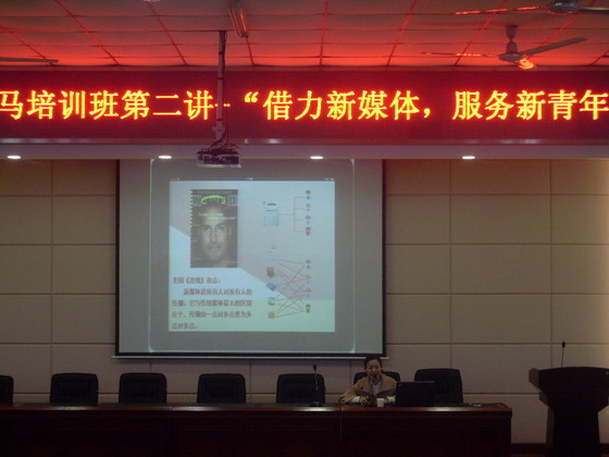 2014年12月2日下午14:30,经管学院青马培训班第二讲“借力新媒体,服务新青年”在文科楼A200顺利举行。校团委副书记郭剑受邀担任主讲,经管学院分团委学生会全体成员及各班班长、团支书参加了此次培训。