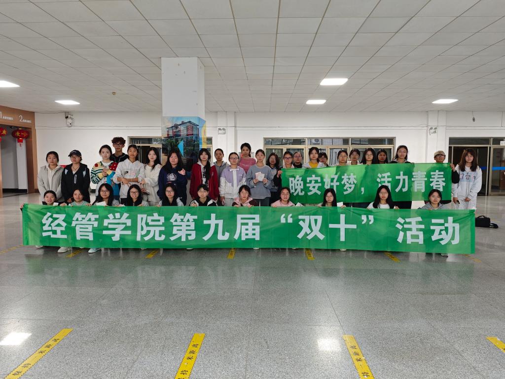 为帮助同学们了解更多心理知识,引导其更好地关注自身发展,2025年10月19日下午,经管学院以“晚安好梦,活力青春”为主题的“双十”活动在五教一楼空地举行。此次活动由院朋辈心理部组织开展,各年级同学自愿报名参加。