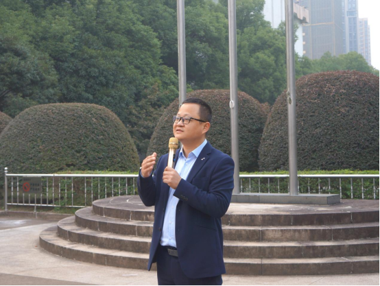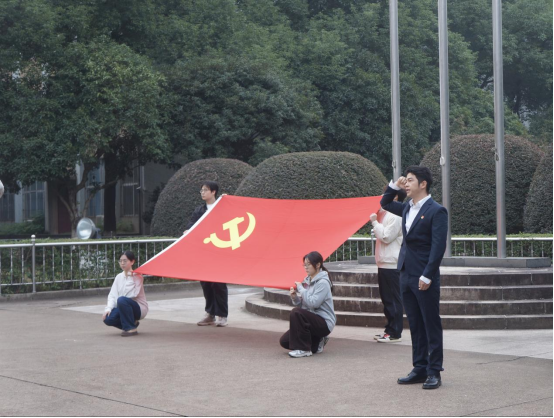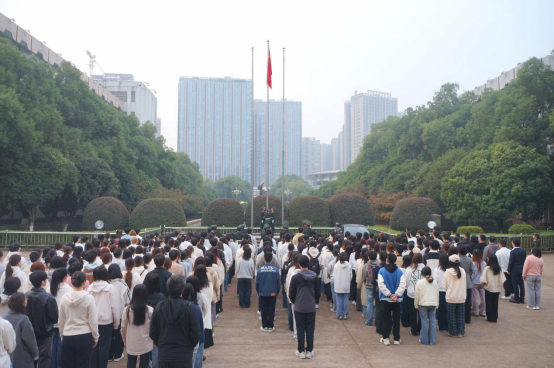 10月27日清晨,经管学院于金盆岭校区经管大楼前坪举行升旗仪式2025年秋季分党校培训班开班仪式,入党积极分子培训班、党员发展对象培训班及预备党员培训班全体学员参与。学院党委副书记汪功伟和全体辅导员参加开班仪式。仪式由团委学生会主席团轮值主席鹿津恺主持
