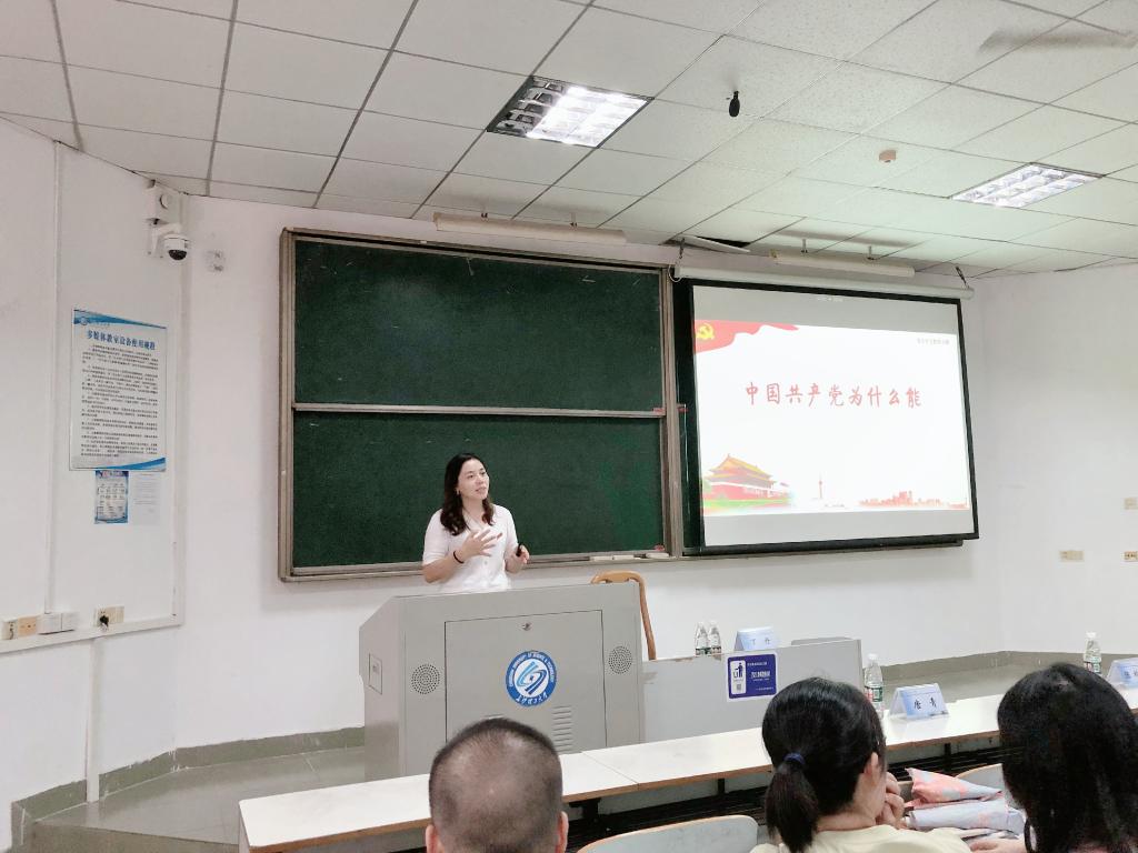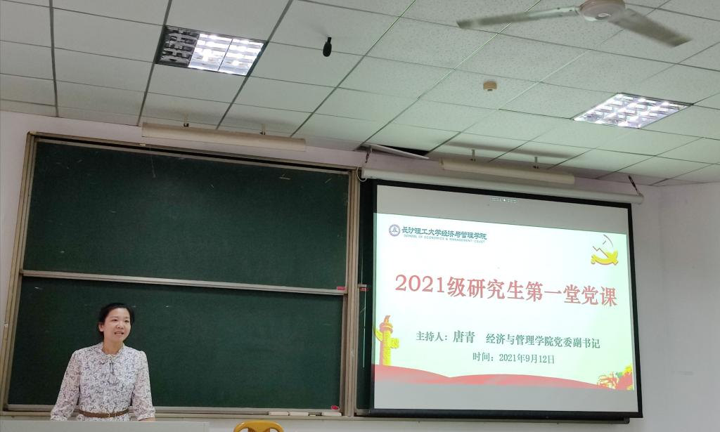 912日下午230,经济与管理学院2021级研究生在金盆岭校区6110听党委书记丁丹讲“第一堂党课”,本次党课主题为“中国共产党为什么‘能’”。院关工委陈均杰、研究生辅导员陈莹及全体2021级研究生参加,院党委副书记唐青主持。