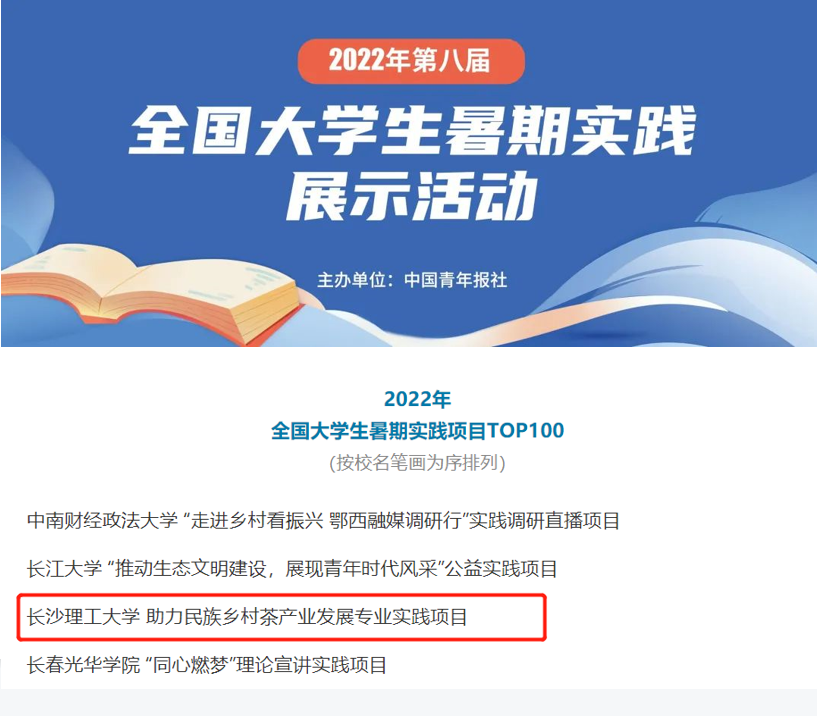 近日,2022年第八届全国大学生暑期实践展示活动名单公布,350vip浦京集团官网经管学院“助力民族乡村茶产业发展专业实践项目”荣获2022年第八届全国大学生暑期实践TOP100。该项目是由经管学院敖洁教授指导,由21级公共管理班王梦晗、张晗、刘雅杰、王秀梅、刘敏、21级经济班石璐青等6名研究生组成的暑期社会实践团队完成。