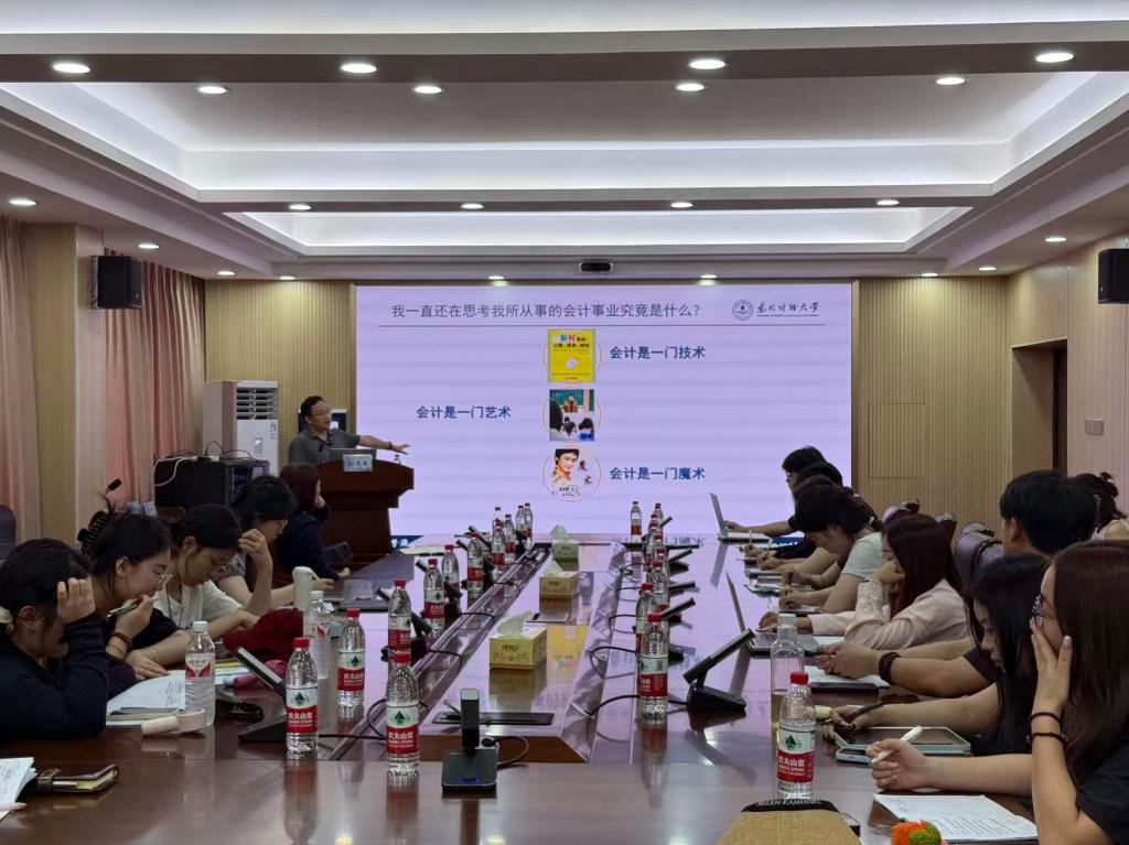 2025年6月7日下午,由中国会计学会、全国会计专业学位研究生教育指导委员会主办,350vip浦京集团官网承办的“MPAcc会计名家公益大讲堂”在经管大楼F202教室举行。本次大讲堂邀请到东北财经大学孙光国教授,围绕“企业会计准则的制定、执行与监管:三方冲突和协调视角”展开深入探讨。经管学院近40名师生参加了本次讲座,讲座由学院副院长尹筑嘉主持。