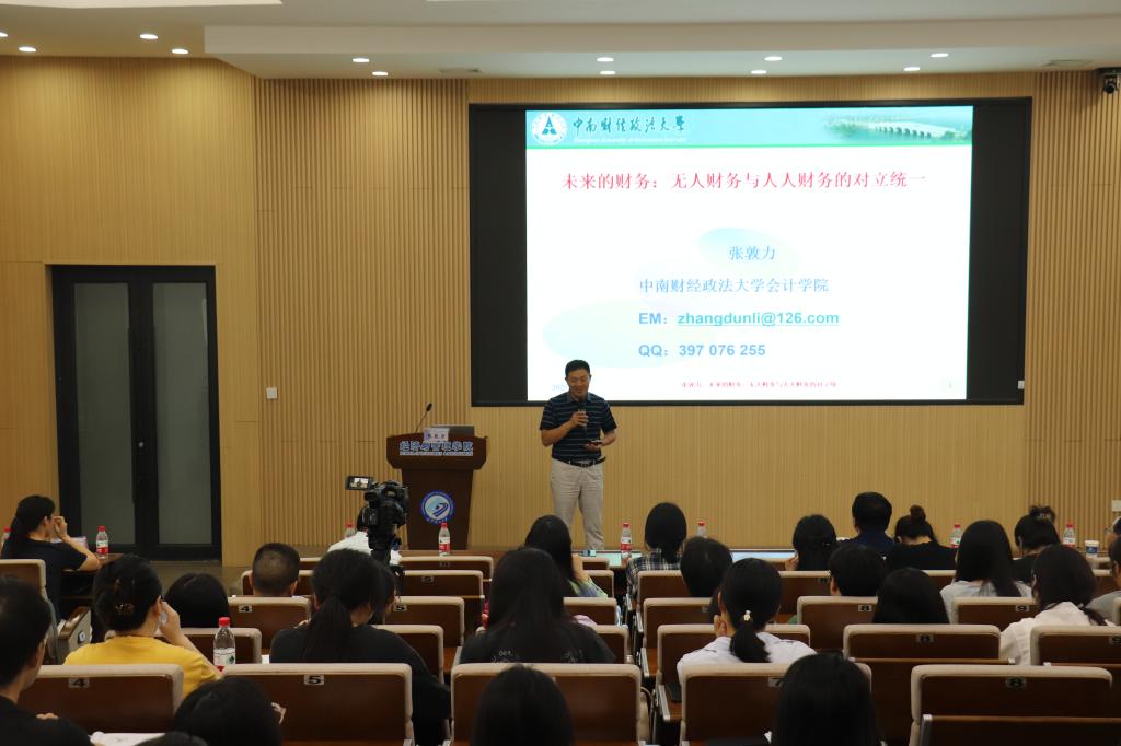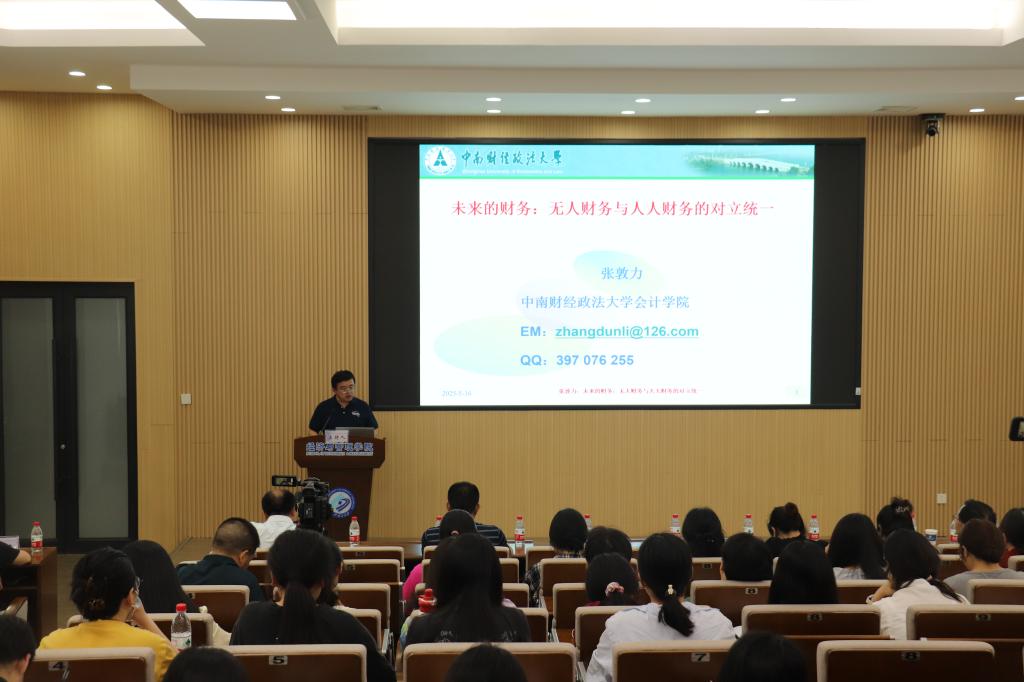 2025年5月16日下午,由中国会计学会、全国会计专业学位硕士研究生教育指导委员会主办,350vip浦京集团官网经济与管理学院承办的“MPAcc会计名家公益大讲堂”在金盆岭校区经管大楼100报告厅举行。本次大讲堂邀请到中南财经政法大学张敦力教授,围绕“财务的未来:无人财务与人人财务的对立统一”展开深入探讨。经济与管理学院院长彭新宇及140余名师生参加了本次讲座,讲座由学院副院长王治主持。