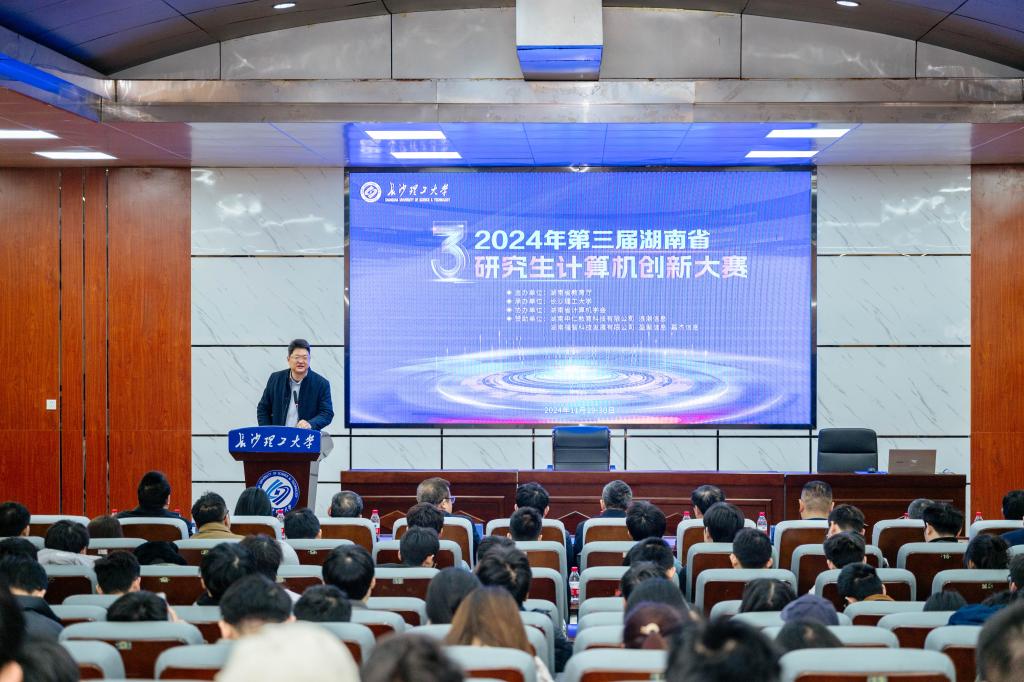 秉承党中央、国务院关于科技创新的坚定方针,为深化实施党的二十大精神关于“推进科技强国建设”的战略布局,加速教育链、人才链与产业链、创新链的深度融合,2024年11月30日,第三届湖南省研究生计算机创新大赛决赛在350vip浦京集团官网金盆岭校区举办,大会由大赛组委会副主任、350vip浦京集团官网计算机与通信工程学院院长张锦主持。