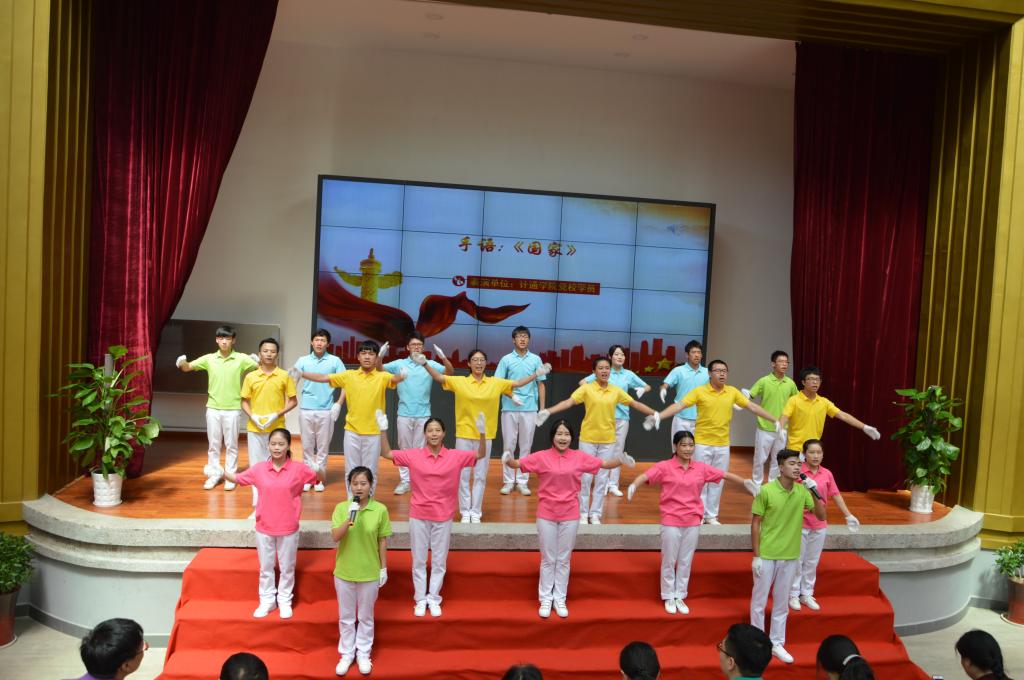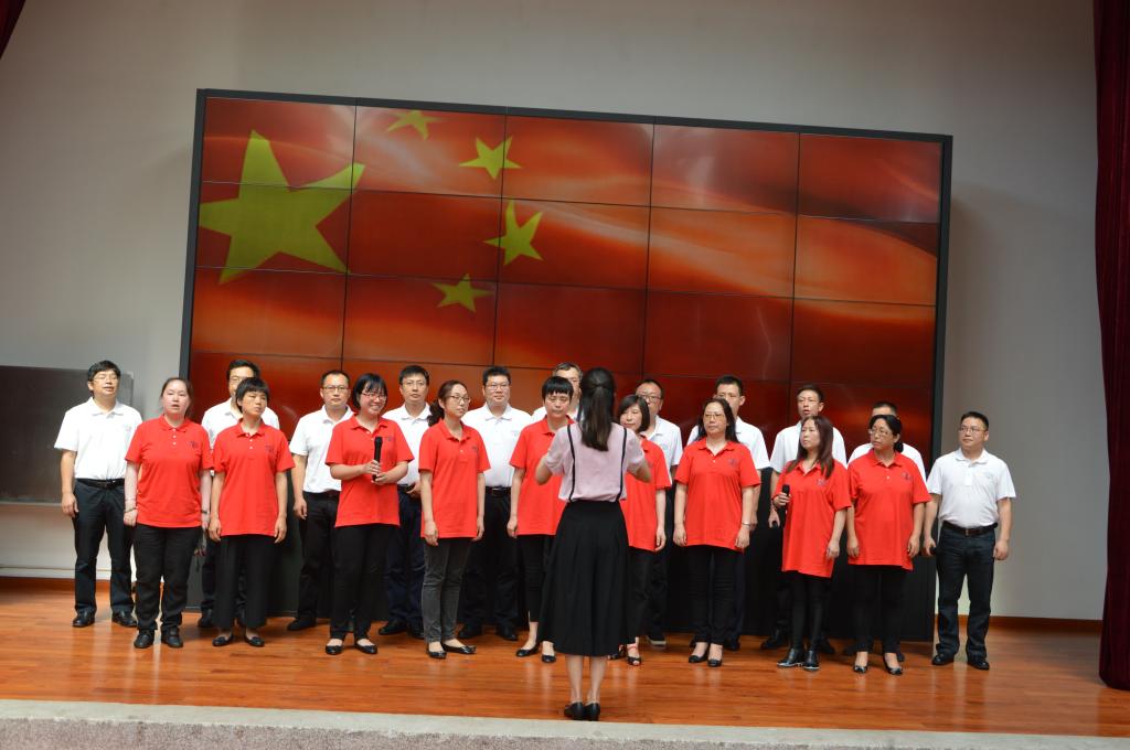 演出中,全院党员和教职工精神饱满、激情澎湃,个个上台倾情参演。软件支部歌舞《万泉河水清又清》教师们轻盈优美舞姿中学院教授委员会主席傅明教授的精彩领唱,学院党校学员温情的手语表演《国家》,网络支部合唱《没有共产党就没有新中国》中青年教师熊兵女儿童声情景剧的参演,青年工作部《如果我在长理遇见你》如诗如画的朗读,研究生支部歌舞《绣红旗》演员们稚嫩可爱真实的表情,行政支部配乐诗朗诵《不忘初心跟党走》方琼书记和王任飞副书记激情坚定的领诵,计应和实验中心支部大合唱《我的祖国》、《歌唱祖国》分声部的柔美动听,计科和通信支部大合唱《保卫黄河》和《团结就是力量》的气势磅礴等等精彩的亮点,给整个会场带来了经久不息的掌声,给观众带来了一场党的教育的盛宴,更加凝聚了人心,更加坚定了广大党员和教职工团结一致跟党走的理想信念!(文\汤晓霞 图\李进)
