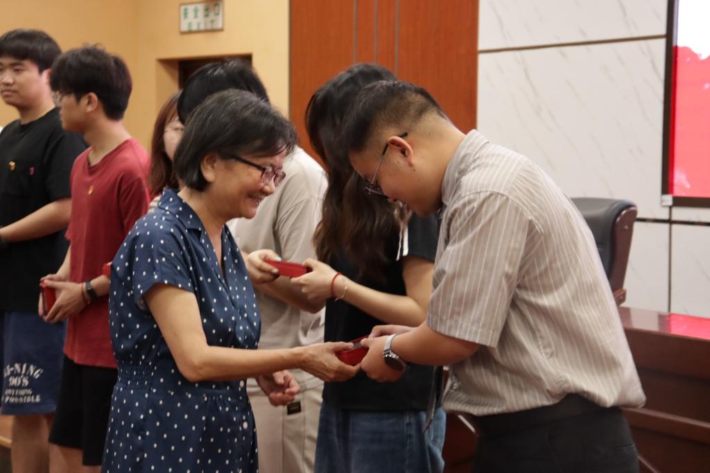 大会在庄严的国际歌声中拉开帷幕,全体与会党员肃立合唱。在重温入党誓词环节中,党员们于纪念明信片上郑重书写誓词并签名,表明为共产主义奋斗终身的坚定立场。毕业生党员代表雷佳琪、贺乌姣先后发言,感谢学院在学业、生活和工作上的帮助,也感谢各位党务工作者们的辛勤付出。蔡立新向毕业生党员赠送纪念品,传达学校的期许与嘱托。刘朝辉以”坚守信仰,勇担使命”为题讲授最后一节党课。他强调,共产党员要以马克思主义基本理论为指导,在党史学习中汲取力量,筑牢思想根基。在今后的学习和工作中,要以党员标准严格要求自己,并鼓励毕业生党员在工作、科研、乡村振兴等领域积极作为,将论文写在祖国大地上。同时,要坚守学术道德底线,探索”党建+”模式,发挥专业优势,让支部工作与专业发展相互促进。