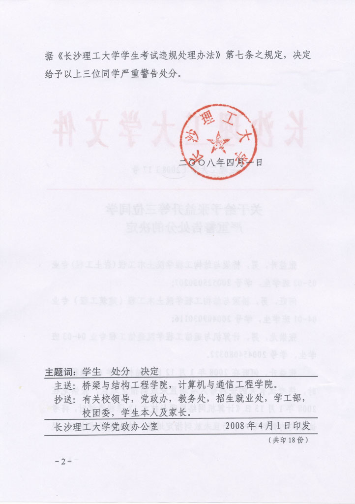 学生违纪处理通知