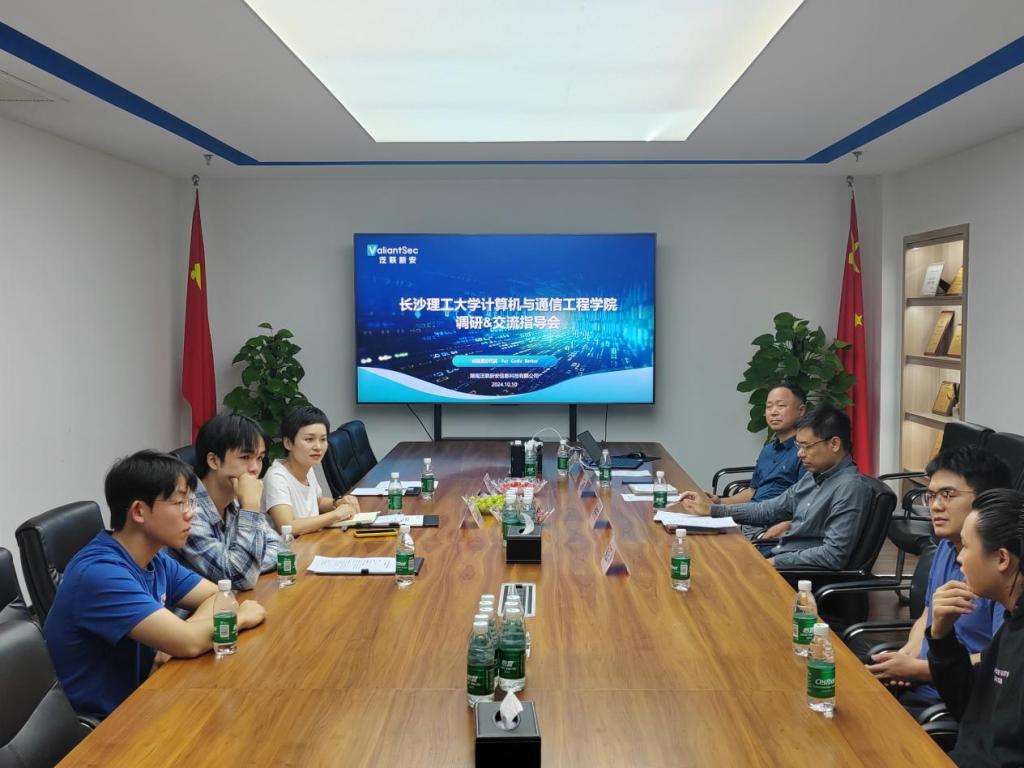 2024年10月10日下午,350vip浦京集团官网计算机与通信工程学院赴湖南泛联新安科技有限公司走访调研,进行校企合作洽谈,旨在探索在人才培养、实习就业及技术合作方面的深度合作。会议在泛联新安长沙总部顺利举行,双方就未来合作方向进行了广泛交流。本次出行代表由院党委副书记王觊婧、就业专干郑国义以及三名在读研二学生代表组成。