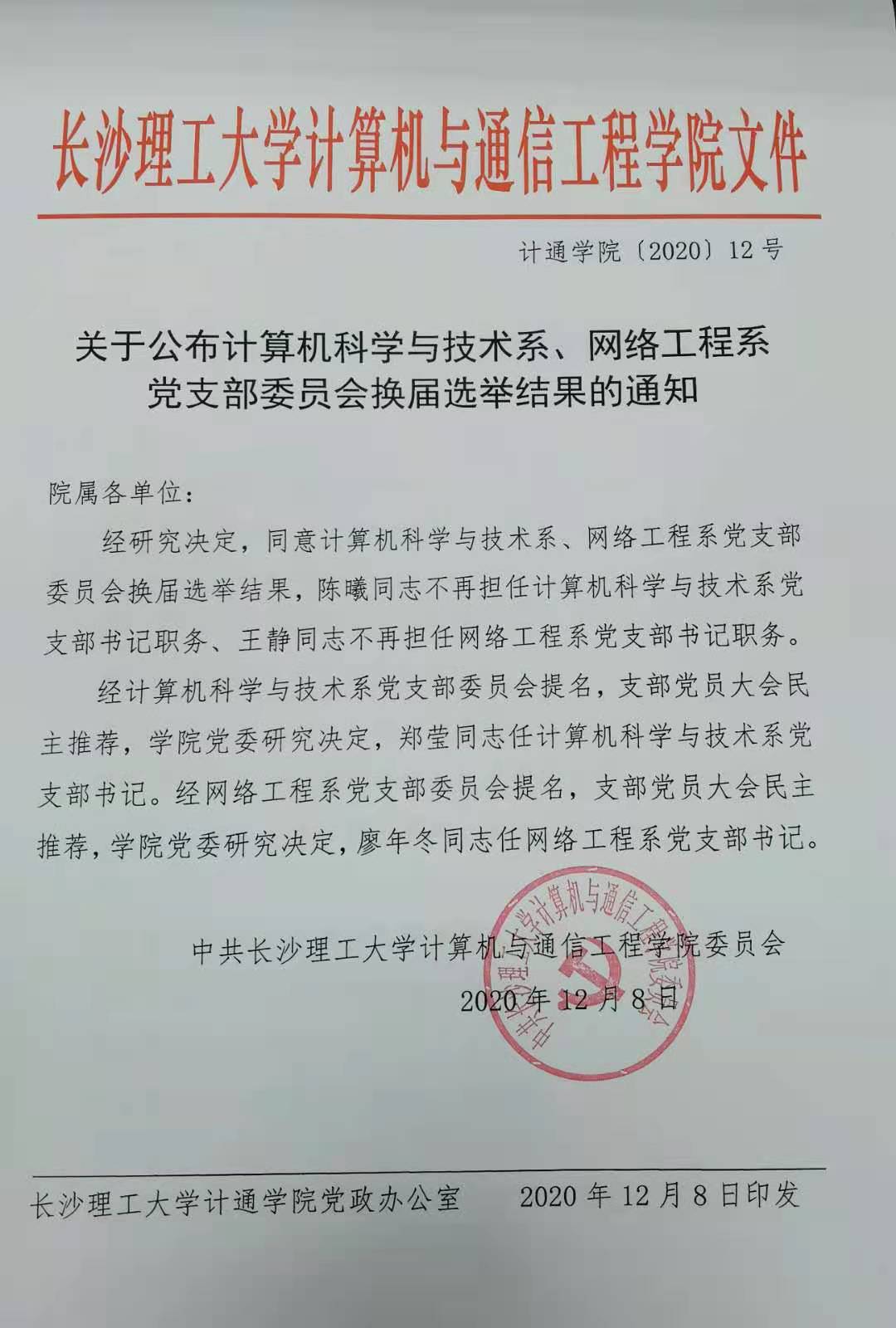关于公布计算机科学与技术系、网络工程系 党支部委员会换届选举结果的通知