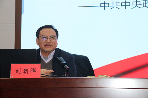 校党委委员、副校长刘朝晖为联系学院师生宣讲党的十九届六中全会精神