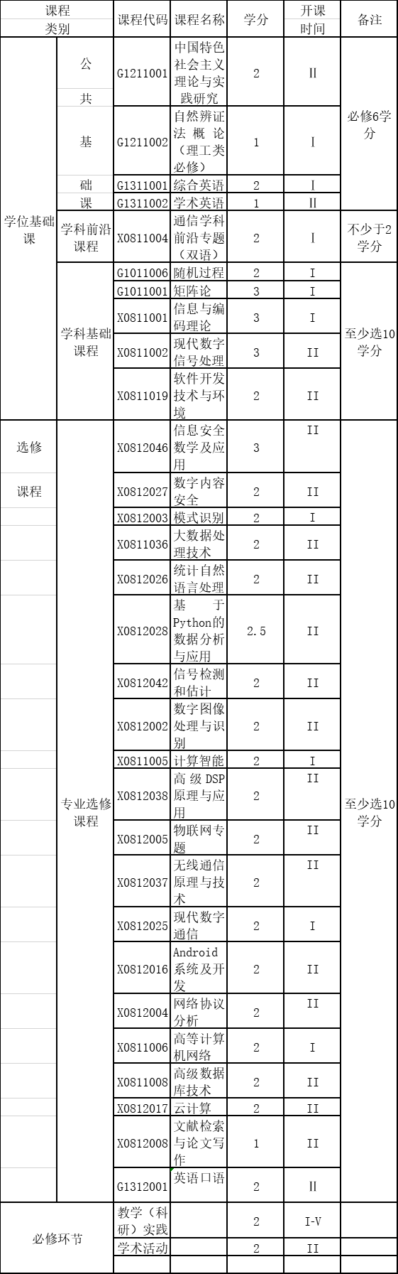 2. 掌握坚实的外语、计算机、数学基础,在通信与信息系统方面具有坚实、深厚的理论基础;深入了解通信学科、信息学科方面的新技术和新发展;在通信与信息系统的某个方向上有较深入的专门知识和技能;具有独立研究、分析与解决本专业技术问题的能力。
