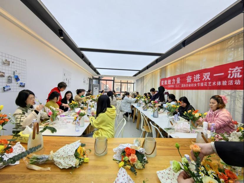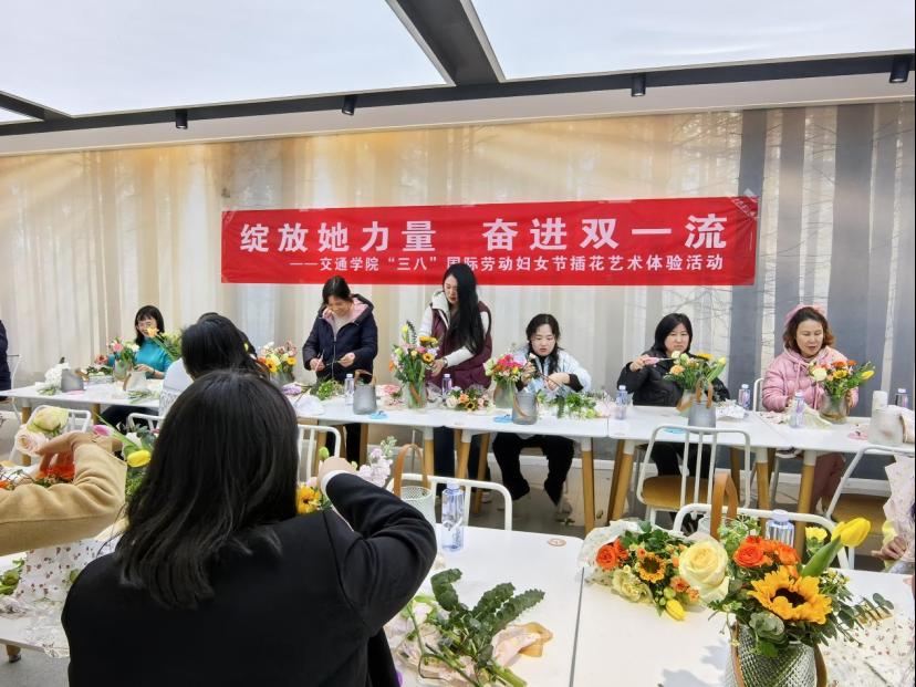 阳春三月,春意盎然。为庆祝第115个“三八”国际劳动妇女节,展现新时代女性风采,3月11日下午,交通学院精心策划的“绽放她力量 奋进双一流”主题插花艺术体验活动在工科二号楼教师发展中心温馨举行。来自学院各系室的近50名女教职工齐聚一堂,在花香氤氲中感受传统文化的魅力,共度了一段优雅美好的时光。