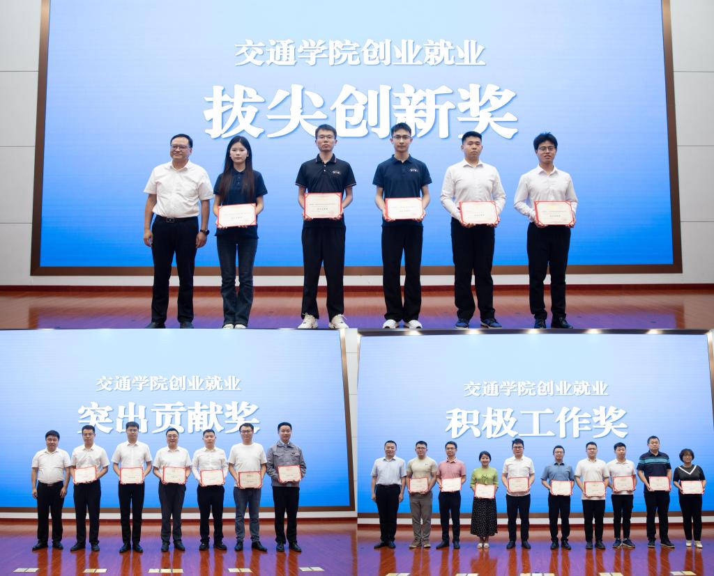 会上,党委委员、副校长刘朝晖为“拔尖创新奖”获奖团队代表颁奖创业就业指导处处长田上为“突出贡献奖”获奖师生颁奖交通学院副院长(主持工作)吕松涛为“积极工作奖”获奖教师颁奖