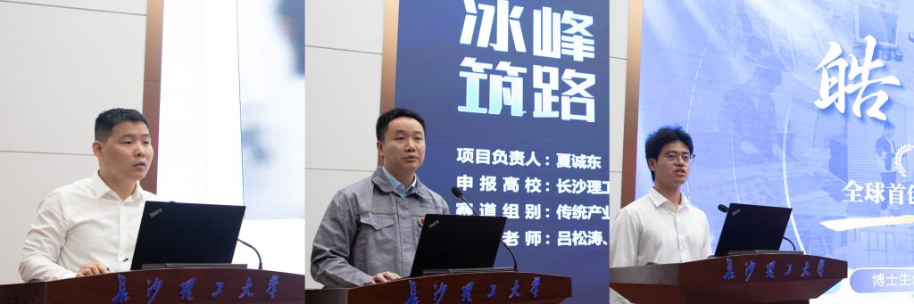 “冰峰筑路”——世界屋脊冻土区高性能沥青领航者“皓途智检”——全球首创路面压实智能检测机器人等科创竞赛获奖团队指导教师代表李希团队成员夏诚东、王成博作项目路演展示及参赛经验分享