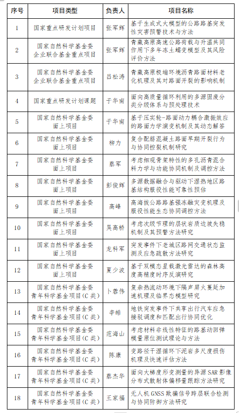 近日,国家自然科学基金委员会公布国家级项目立项结果,我院再创佳绩:共获批国家级项目18项,其中包括国家重点研发计划项目1项、国家自然科学基金企业联合基金重点项目2项。此次项目获批,既是学院在交通运输领域基础研究与技术攻关方向持续深耕的实力彰显,更是学科核心竞争力的集中体现。项目的落地实施,将进一步推动交通基础设施工程、人工智能赋能优势学科方向的科研创新与高层次人才培养,为学校“双一流”建设注入强劲交通动能。