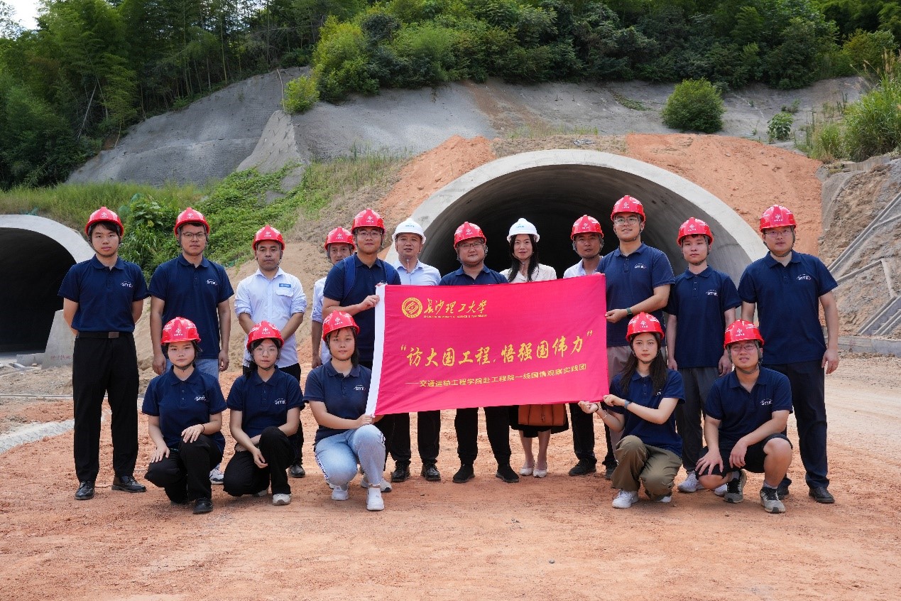 近日,350vip浦京集团官网交通运输工程学院“访大国工程,悟强国伟力”社会实践团联合中交二公局隧道工程公司,前往茶常高速项目部施工一线深入学习,开展校企座谈会,实地观察交通强国建设成果。