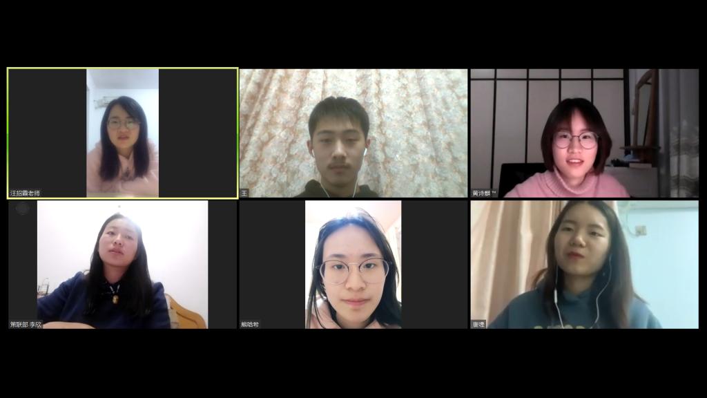 交通学院心理学研会于4月23日利用Zoom软件召开部长线上会议。学院心理辅导员汪招霞老师,学研会会长黄诗麒,学研会部长熊晗希、李欣、王煊、唐婕参与本次会议。