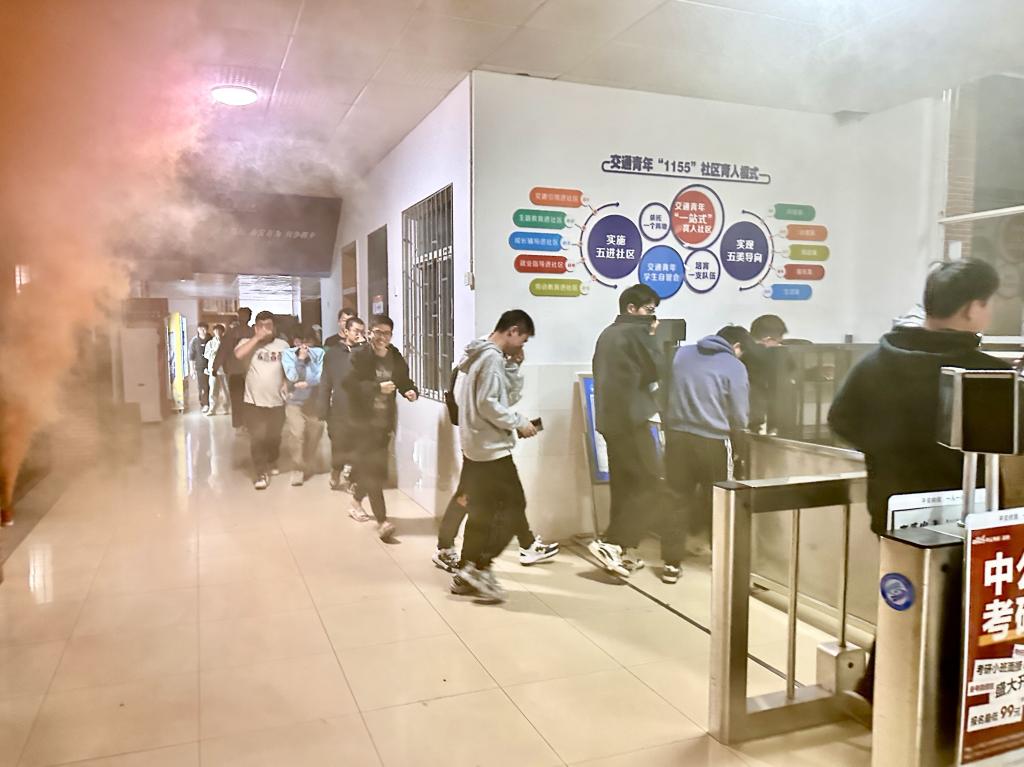 交通学院举办“防微杜渐‘消’灭火险,未雨绸缪‘防’在青年”消防逃生疏散演习活动