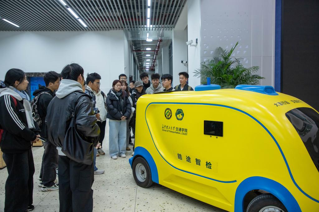 本次论坛分为分享与参观两部分。论坛伊始,王成博向同学们介绍他的创业项目——团队自主研发的“路面压实质量智能检测车”,该设备可在施工中同步检测压实度、温度等数据,达国际领先水平,相较传统事后钻孔取样法,大幅提升效率与精度,节约时间和资金成本。他从项目的理论突破、三代测试车辆迭代历程,以及项目斩获国内大奖、获国际专家认可的成果,和自身创业经历等几个方面向同学们阐释了创业需持续思考、并非一蹴而就的道理。随后,同学们在王成博博士的带领下近距离参观测试车辆,详解设备原理与零件构成,并走进由他创办的长沙皓途交通科技有限公司位于卓越工程师学院的办公区域,让同学们深刻体会到创业的艰辛与团队协作的重要性。