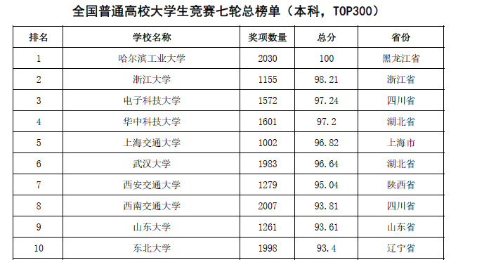 图2 全国普通高校大学生竞赛排行榜七轮总排行榜浦京位列第50名