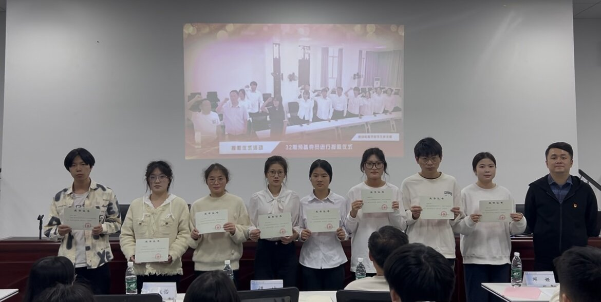会议在激昂的《国际歌》声中拉开帷幕。5名学员代表依次上台分享入党感悟,坚定表态将始终践行“全心全意为人民服务”的宗旨,主动发挥党员先锋模范作用。