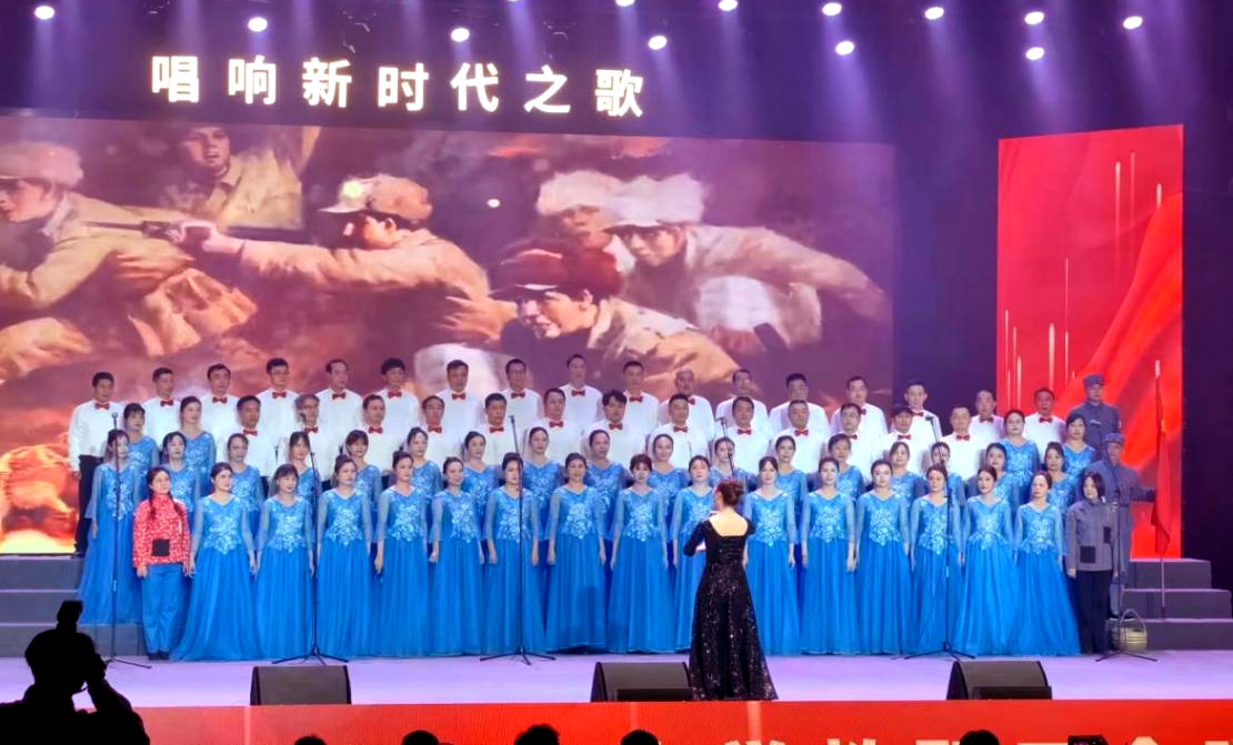继续教育学院合唱队,由70多名学院教职员工组成,整齐上场,有序离场。参赛歌曲为《在太行山上》,指挥张莎,朗诵张静,钢琴伴奏刘丹俐。演唱从一个八路军小号手的入场开始,嘹亮军号声响彻云塘大礼堂,朗诵声起,军旗招展。学院四位老师分男女两组,一起表演了“母亲送儿打东洋,妻子送郎上战场”的坚定毅然与依依不舍。紧随其后,歌曲《在太行山上》的合唱声起,从始至终分为两个声部,前后各两个重唱,一会儿婉约悠扬,一会儿铿锵激愤,歌声一浪高过一浪,重现了当年太行山军民坚毅勇敢、众志成城、气焰万千、有我必胜的团结抗日情景。演唱震撼了现场观众和评委。最终学院获得了决赛第二名的好成绩,荣获本次合唱比赛二等奖。